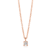 Legendary diamonds of superlative cut, color, clarity and brilliance. Pendant in 18k rose gold with a round brilliant diamond. On a 16″ chain. Carat weight .12.